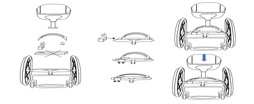 Exemple d'application (et dessins qui accompagne le brevet) invention N°3 Double lames imbriquées de suspension active et contre lame Bandé Bondy®